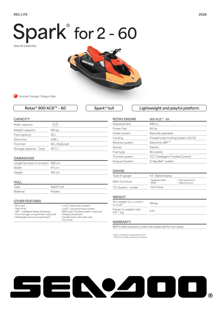 Sea-Doo Spark for 2 – 60 HP (2026)